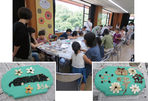 2017年8月4日(金)に京都府立植物園にて、夏休みの自由研究にもなる「タネのルームプレート作り体験教室」を開催しました。40名超のお客様にご参加いただき、下絵ハンコを押したり、好きなデザインを下描きしたうえで、その上に自由にタネを貼り付けて、世界にひとつだけのオリジナルプレートを制作しました。「小学生でも楽しんで作れた」「タネの勉強になった」と嬉しい感想をいただきました。