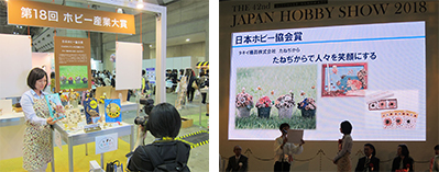 「たねぢから」プロジェクトの取り組みが、一般社団法人日本ホビー協会が主催する「ホビー産業大賞」において『日本ホビー協会賞』を受賞しました。その授賞式と出展を兼ねた「2018年日本ホビーショー」(2018年4月26~28日、東京ビッグサイト)には、148,000人もの来場者があり、たねぢから展示ブースにも多くの一般のお客様が興味を持って立ち寄られていました。
