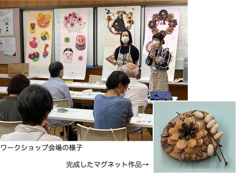 公益財団法人京都市環境保全活動推進協会主催の「ごみ減量×福祉×地球緑化をつなげるプロジェクト」に協賛し、たねぢからワークショップを開催しました。参加者の皆さんは試行錯誤しながらも自由な発想で、素敵なマグネット作品を作っておられました。「タネで何かできることに気付き、今後のボランティア活動にも活かしていきたい」といった嬉しいお言葉をいただきました。今回、市民ボランティアの方々が地域活性化のために努力しておられる姿を拝見し、たねぢからも地域の取り組みに協力し、貢献していきたいと感じました。