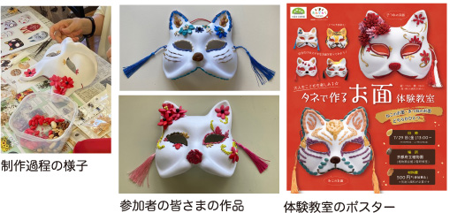 毎回大好評の「たねぢからキット」の社内販売。今回は「タネで作るお面」で、ねこときつねのお面を販売したところ、それぞれ販売開始から20分で完売しました!喜びの声とステキなお写真がたくさん寄せられましたので、ほんの一部を紹介します。「子供達はカラフルで色々な形のタネに興味津々」。「タネの種類を見たり考えたりすることで勉強になり、子供達も喜んでいました」。「夏休みの自由研究の作品になり、とても助かりました」など、たくさんのコメントをいただきました。