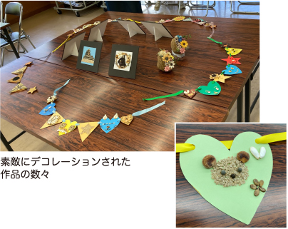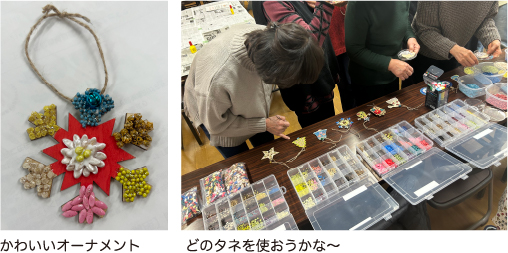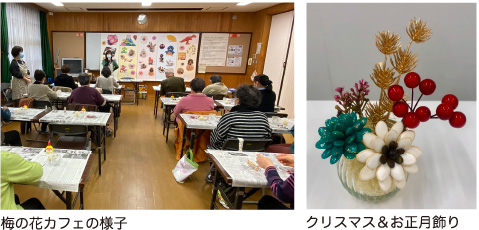 11月22日(水)に『梅の花カフェ』で「オーナメント」を作成しました。季節にぴったりの作品や、自由な発想で個性豊かな作品など、皆さん楽しんで作っていただきました。