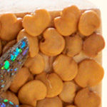 海で拾った貝殻やガラス片などをタネと一緒に貼り付け、